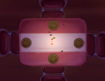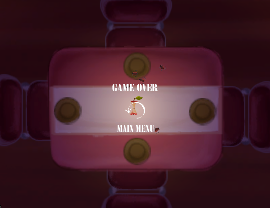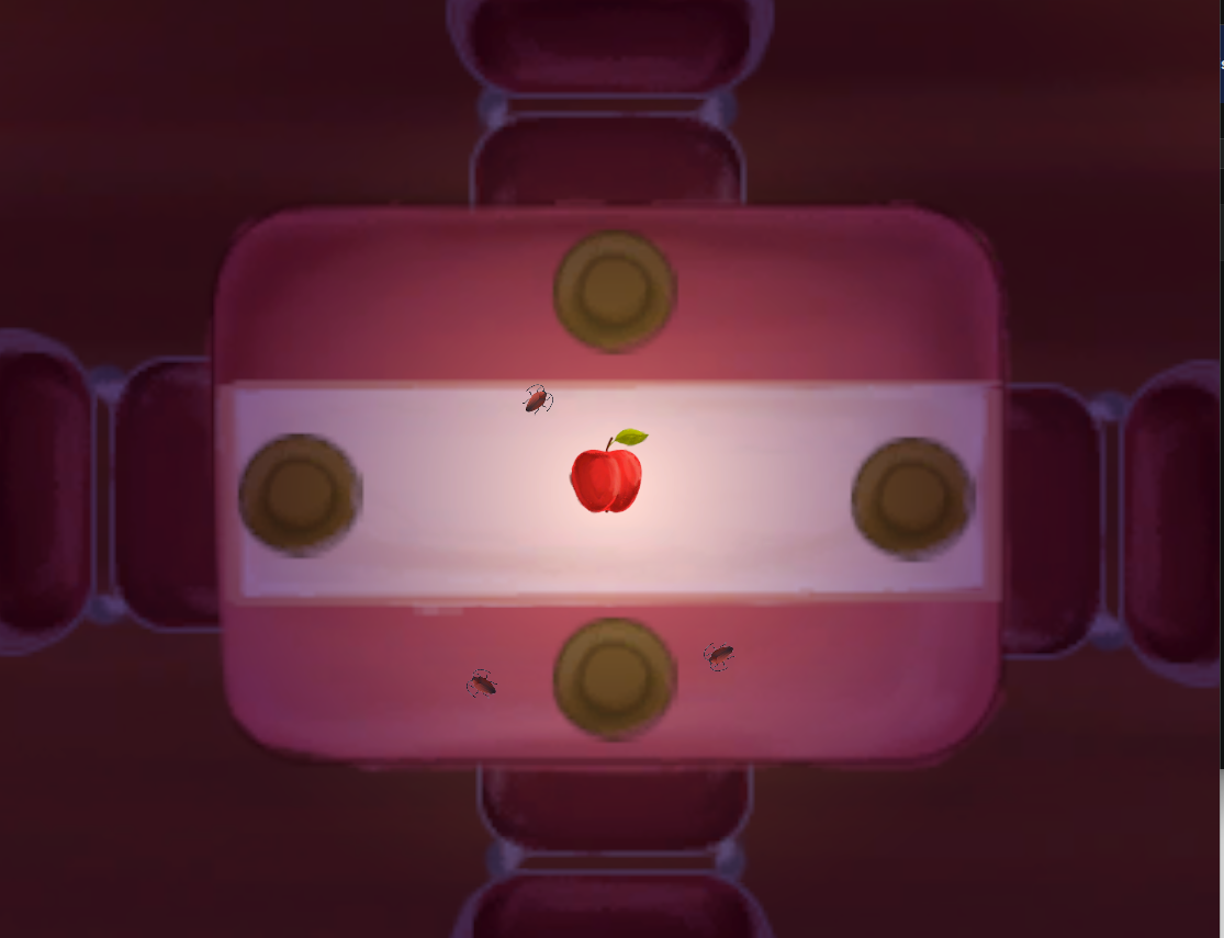 ObjectivesThe main objective is to protect the apple for as long as possible. To do this, the player must continuously eliminate cockroaches before they manage to reach the center of the table. In the long term, the goal is to resist each wave of insects and improve reaction capacity and strategy with each attempt. The game aims to make each round represent a new challenge, with the tension of knowing that a single mistake can mean defeat.